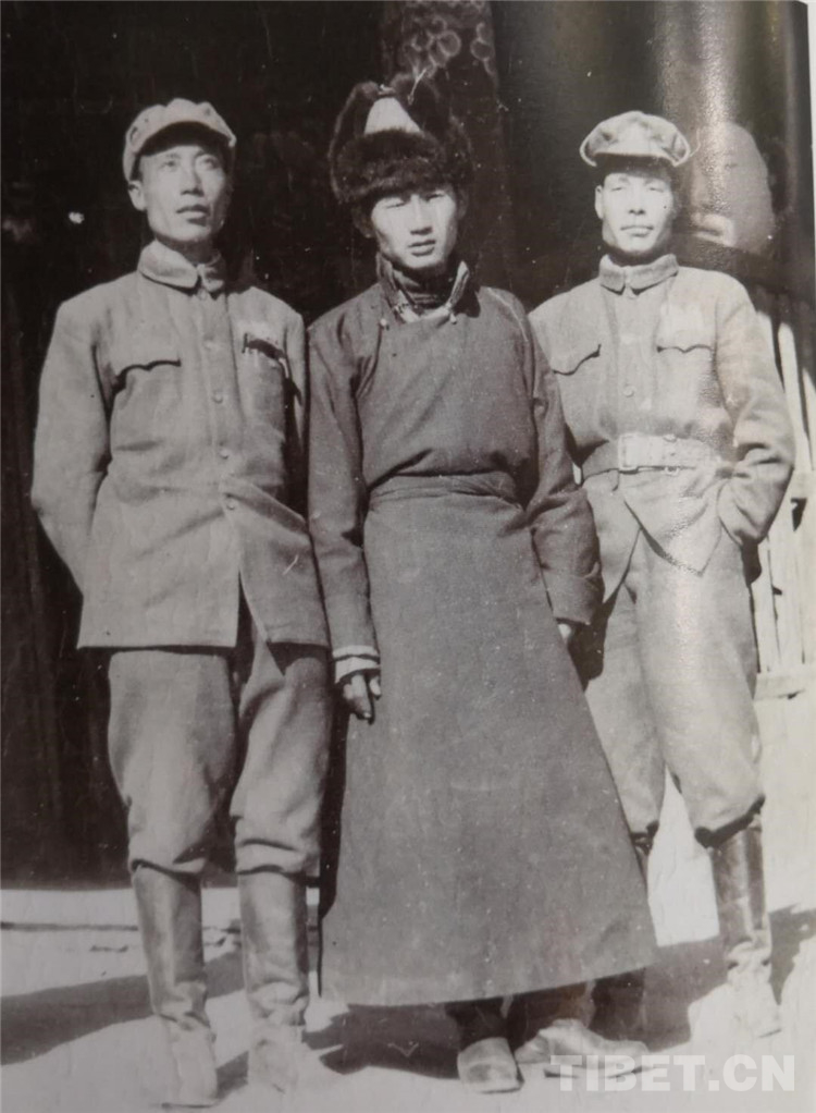 圖為1951年11月18日,團長郄晉武(右)政委楊軍(左)與江孜喇嘛寺白吉堪布(中)合影。