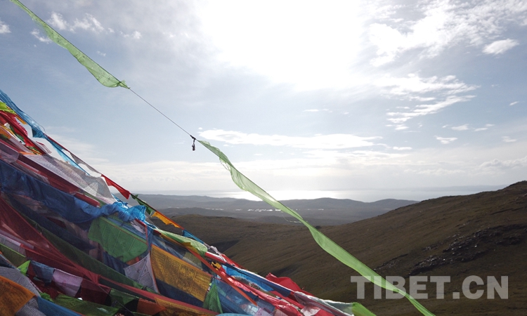 圖中遠處波光粼粼的地方就是扎陵湖 攝影:楊月云