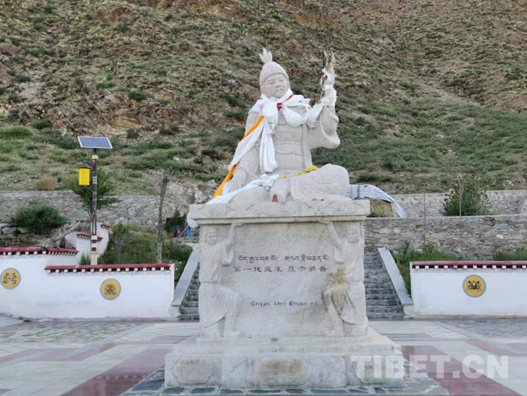 圖為扎西次日山腳下的第一代藏王聶赤贊普塑像 攝影:孔夏