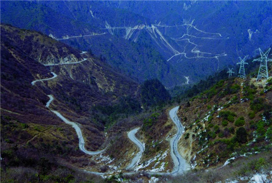 圖為國(guó)道318線未通隧道前翻越二郎山的盤山公路。圖片來源:四川新聞網(wǎng)