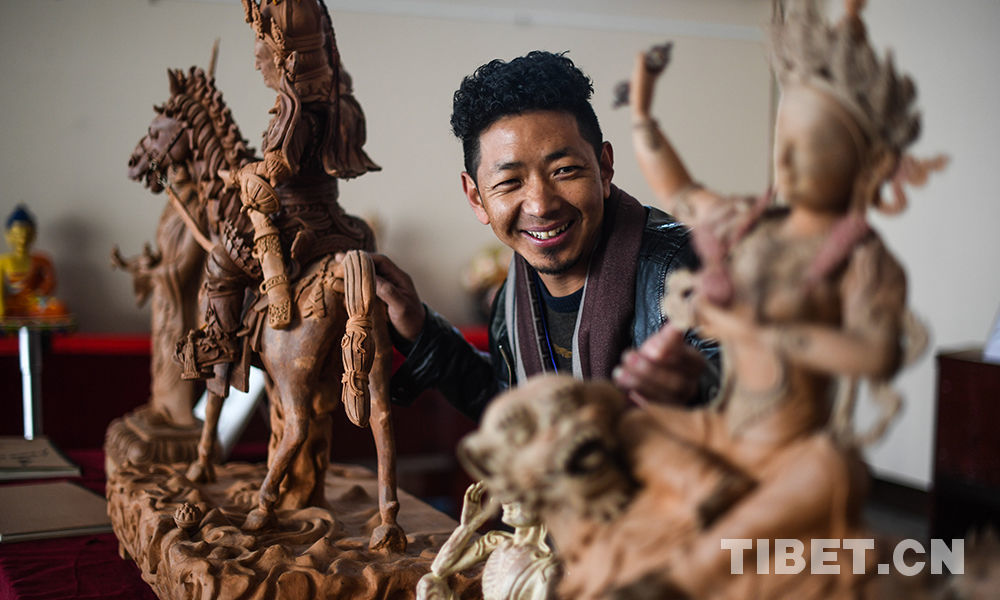 圖為拉薩市堆龍德慶區(qū)的達瓦桑珠展示他的泥塑作品 攝影:普布扎西