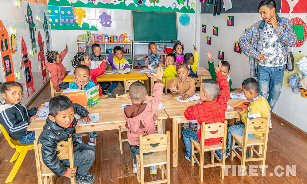 圖為山南市乃東區(qū)頗章鄉(xiāng)完小附設(shè)雙語幼兒園的孩子們 攝影:曲業(yè)芝