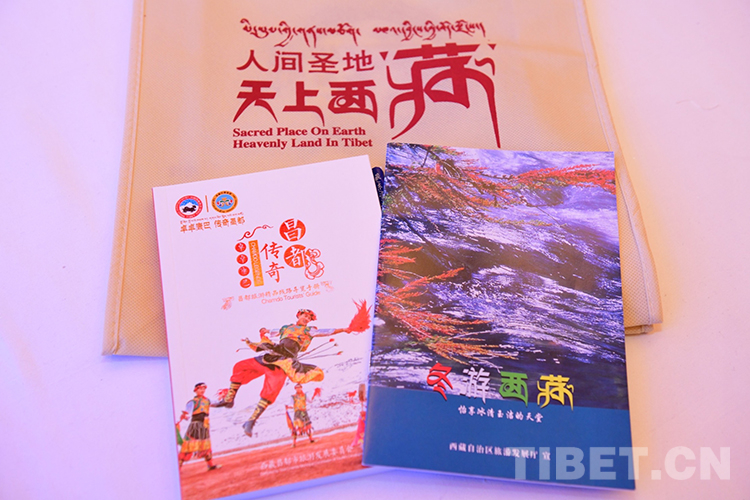 圖為“冬游西藏?共享地球第三極”旅游推介會成都站現(xiàn)場展示的西藏旅游資料