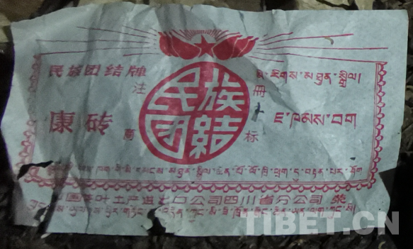 圖為西藏自治區(qū)阿里地區(qū)普蘭縣科迦村居民家中保存的滎經(jīng)生產(chǎn)的“民族團(tuán)結(jié)牌”康磚標(biāo)識(shí) 攝影:趙國(guó)棟