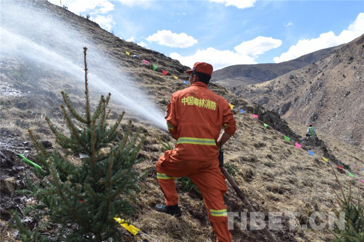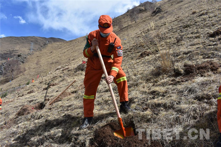 圖為昌都市森林消防支隊江達中隊積極參加駐地植樹活動