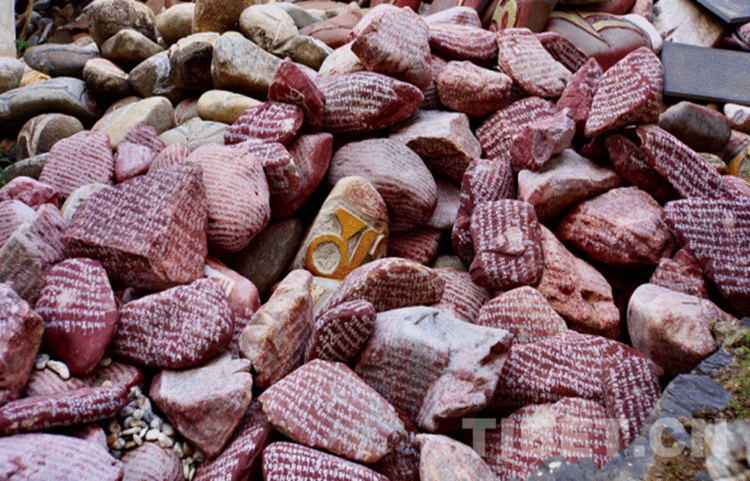佛教文化的興盛使得人們對(duì)神佛熱衷崇拜,巖壁已不能滿足宏揚(yáng)教義和偶像崇拜的需求,靈石崇拜古而有之,在石頭上刻上經(jīng)咒和神佛圖像增強(qiáng)其靈性的行為產(chǎn)生,隨處可揀的石頭便成了石刻藝人們創(chuàng)作的天地——瑪尼石由此而生。