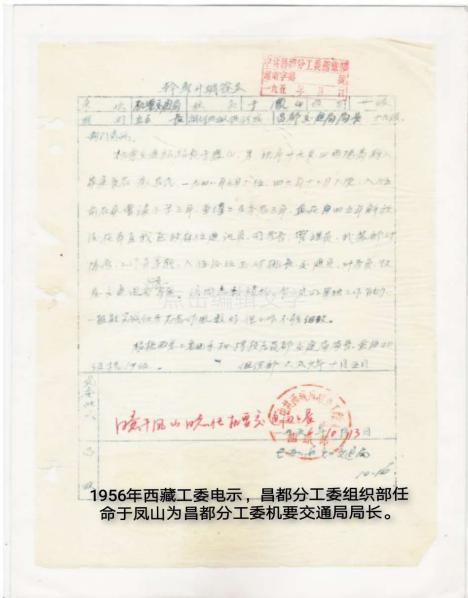 在1956年全國轟轟烈烈的社會主義改造高潮中,西藏迎來了一個劃時代的日子,4月22日西藏自治區(qū)籌備委員會成立,領(lǐng)導(dǎo)人講話都提到了民主改革問題。西藏工委在執(zhí)行中央“慎重穩(wěn)進”的過程中,準(zhǔn)備在昌都、日喀則實行民主改革試點。因之接踵而來的是擴大機構(gòu)增加人員,進行大力宣傳和試點。父親負責(zé)的昌都分工委機要交通站也在擴充之列,由機要交通站擴充為機要交通局,直屬昌都分工委領(lǐng)導(dǎo)。在西藏工委電示下,昌都分工委組織部下文任命父親為機要交通局局長,周孝山為副局長,從1956年10月16日走馬上任。母親非常清楚地記著機要交通局除了上面提到的幾位,還有陶躍忠、王佳廉、唐俊生、韓進先、鄭海超等近20多位從事機要交通的同志。
