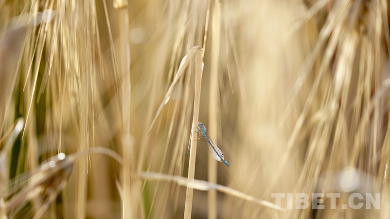 圖為青稞上的藍(lán)色豆娘