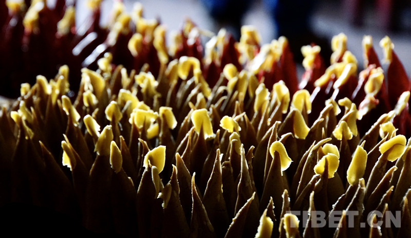 圖為跳動(dòng)著火焰的酥油燈