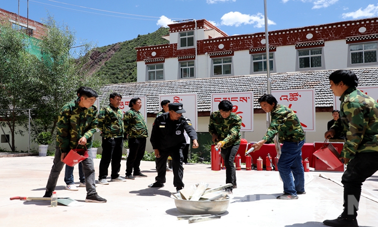 中國西藏網(wǎng)訊 “拔下保險銷,讓噴嘴對準火焰根部……”46歲的尼瑪一邊講解一邊演示滅火器使用方法和注意事項,身邊幾位穿著迷彩服的學員正認真觀察并模仿著。
