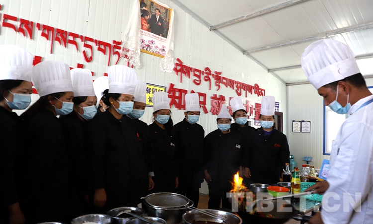 圖為卡若區(qū)就業(yè)創(chuàng)業(yè)培訓中心的學員在學習烹飪 攝影:賈華加