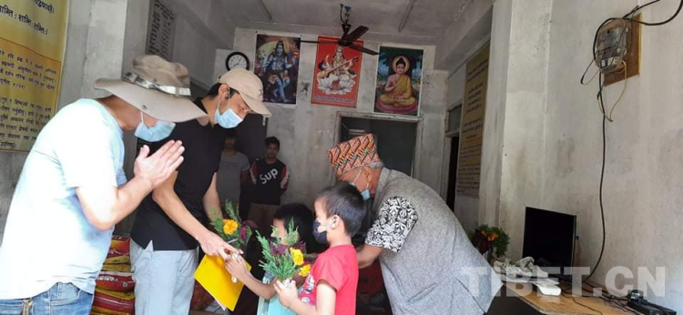 Aama Ko Maya孤兒院小朋友們向中國西藏自治區(qū)農(nóng)牧科學(xué)院援尼泊爾北部山區(qū)農(nóng)業(yè)項目組專家獻花以表示感謝