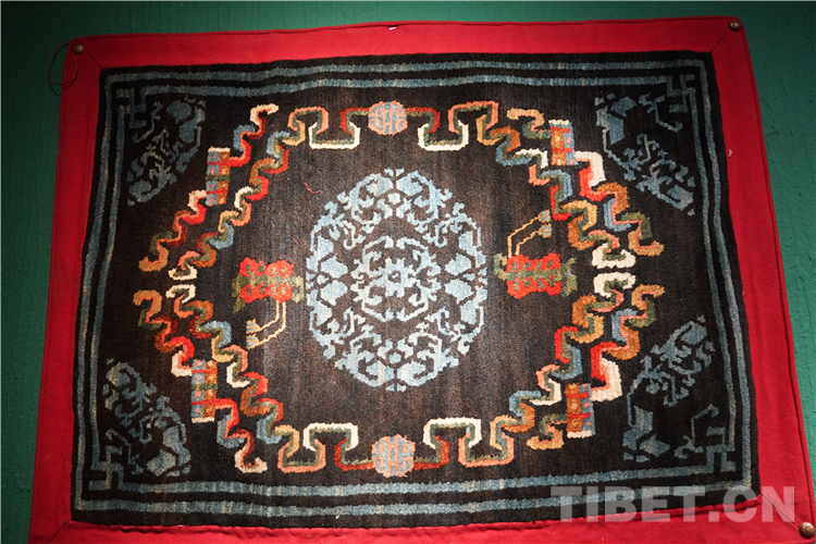 習(xí)慣上,藏毯被分為寺廟用毯與世俗用毯。寺廟用毯為:禪毯、幡毯、柱毯、金剛法舞毯、門簾毯等。世俗用毯為:室內(nèi)卡墊、地毯、馬鞍毯、馬褥子、驢遮面、坐墊等,與雪域高原獨(dú)特的生活方式,民族文化息息相關(guān)。