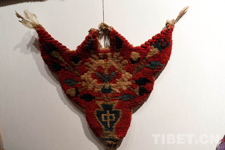 驢遮面是西藏在傳統(tǒng)春耕季節(jié)為牲畜制作的頭飾?!按焊竟?jié),家家戶戶會(huì)將自家的牲畜精心打扮,寓意來(lái)年風(fēng)調(diào)雨順?!毙鞈?yīng)龍說(shuō):“為牲畜愿意花很多心思,精心制作款式樣式都不同的藏毯飾品,體現(xiàn)了農(nóng)牧民群眾對(duì)美好生活的向往和淳樸善良的美好品質(zhì)。”