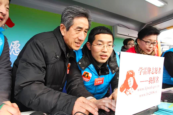 圖為葉如陵在學(xué)雷鋒志愿者活動中