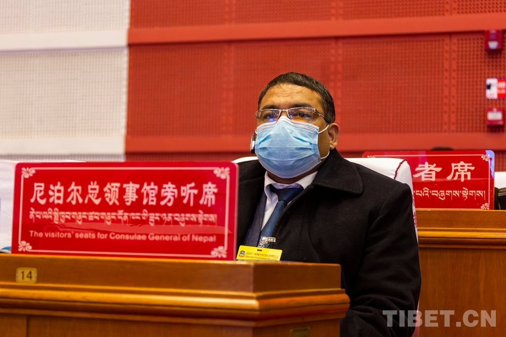 此次開幕會,尼泊爾駐拉薩總領事館總領事納瓦拉杰?達卡爾也應邀旁聽。(中國西藏網(wǎng) 記者/王淑 王媛媛 趙耀)