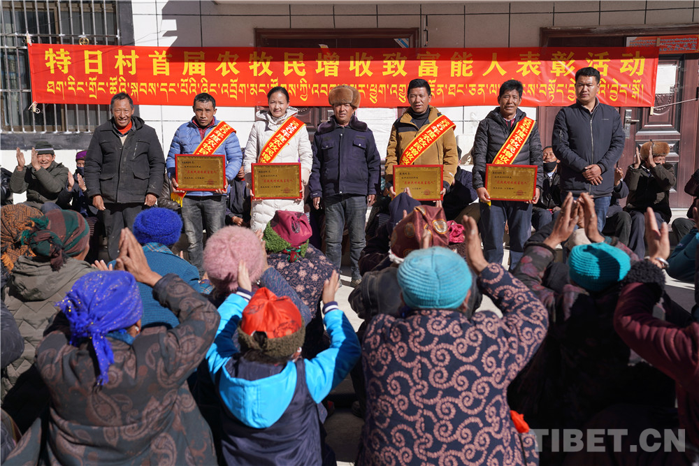 在表彰大會上,特日村第一支部書記米瑪扎西說:“這次特地從黨建經(jīng)費中拿出2000元,給4位致富能人表彰,就是為了鼓勵有更多的能人帶領(lǐng)大家共同脫貧奔小康?!毕乱徊剑濉皟晌毕M赃@次致富表彰大會為動力,最大限度發(fā)揮致富帶頭人示范引領(lǐng)和輻射帶動作用,以傳、幫、帶、教等方式帶領(lǐng)村民們向著共同富裕的目標(biāo)不斷前進(jìn)。