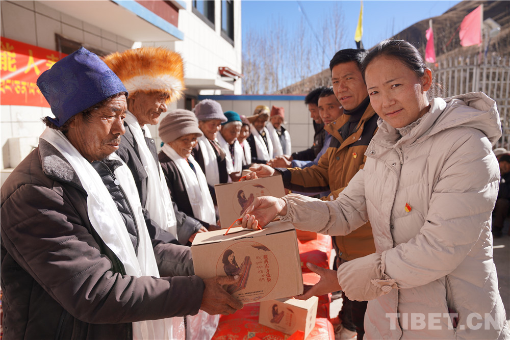 先富起來的人們集中慰問了村里10名老人,送去了10條被子、10套藏藥古方鹽袋等價值近3000元的慰問品,得到了村民們的贊譽。