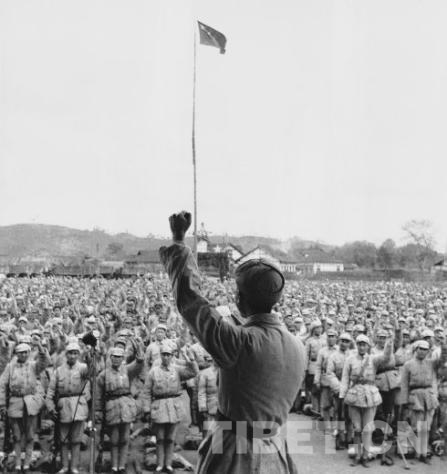 圖為1950年3月,十八軍在四川樂山舉行進軍西藏誓師大會。