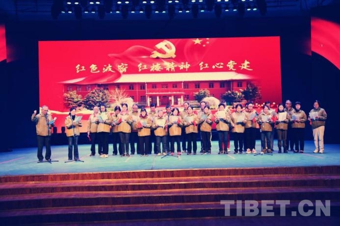 圖為十八軍后代代表團成員參演西藏波密紅色舞臺劇《帕隆江畔的紅色記憶》
