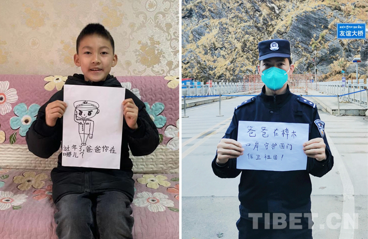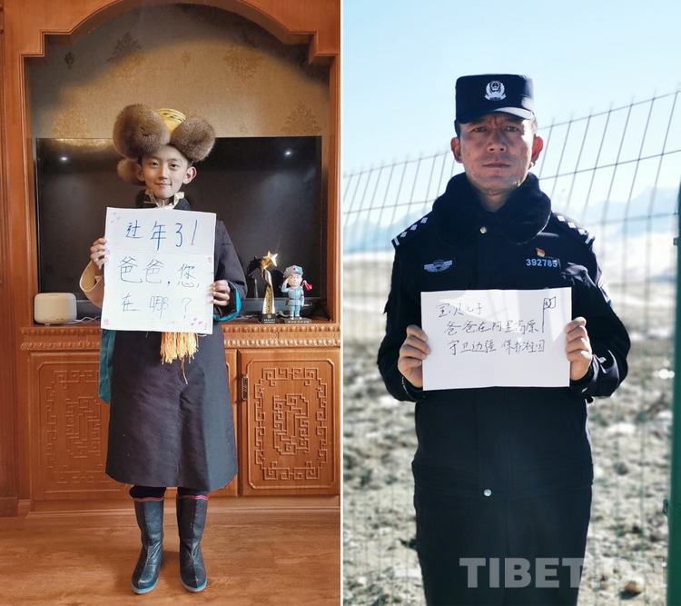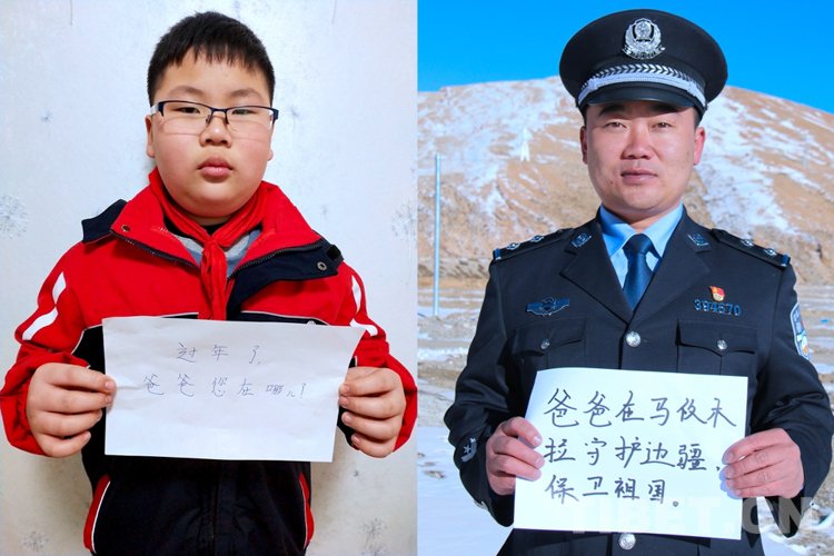 這是一張拼版照片,孩子名叫平措扎西,今年5歲,3年沒(méi)和爸爸一起過(guò)年了,今年和媽媽在日喀則過(guò)年。爸爸格瑪次仁是西藏出入境邊防檢查站阿里邊境管理支隊(duì)扎西崗邊境派出所民警,新春將至,他和他的戰(zhàn)友堅(jiān)守在海拔4400米、位于獅泉河下游的典角村,默默守護(hù)著邊境一線的安全穩(wěn)定。