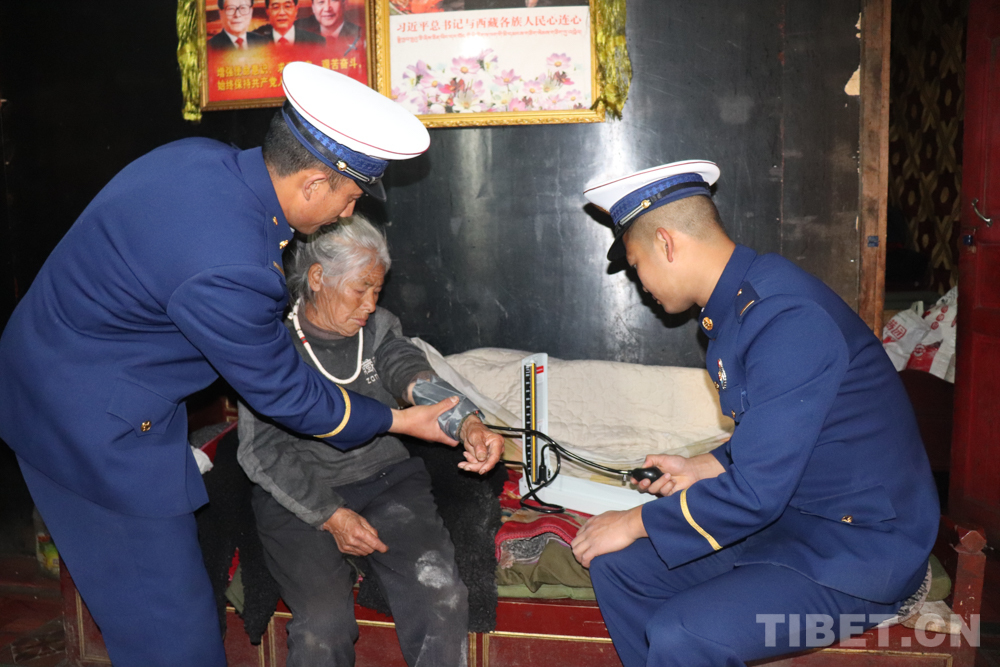 圖為阿玉龍指戰(zhàn)員(右)為卓給阿媽測(cè)量血壓