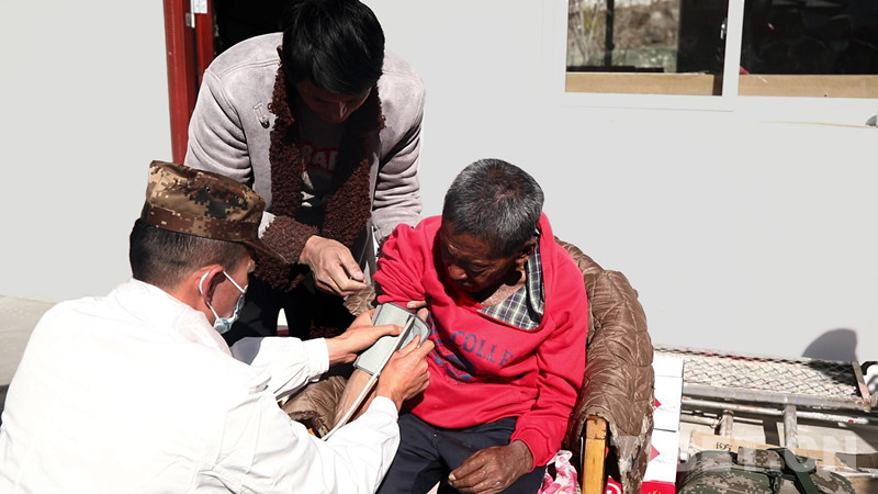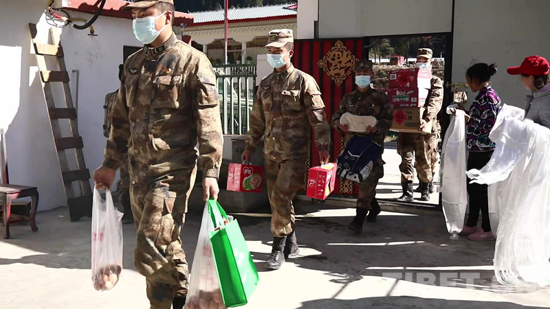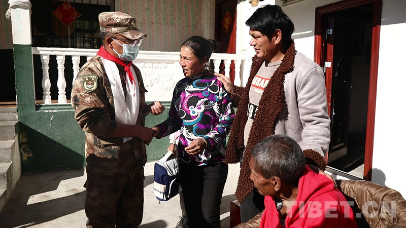 圖為官兵們帶著禮物來(lái)到扎央老人家中