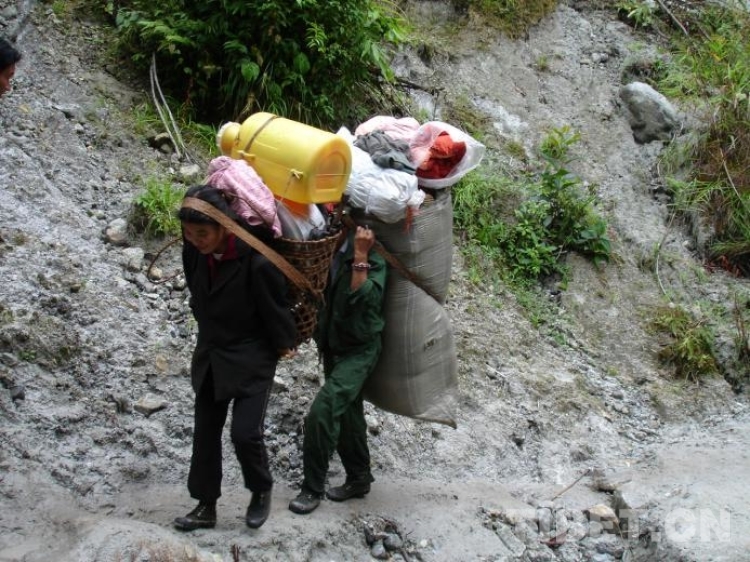 由于境內(nèi)交通閉塞,交換是墨脫門巴族、珞巴族群眾獲取生活必需品的重要途徑。而對(duì)外進(jìn)行物資交換,往返途中還要背負(fù)重物,翻越高山陡崖、跋涉湍急溪流,爬天梯、滑溜索、過獨(dú)木橋,一次往返需10至20天左右,勞動(dòng)強(qiáng)度和艱險(xiǎn)程度之大令人瞠目結(jié)舌,沿途殘留的人畜白骨充分印證了此路之艱險(xiǎn)。