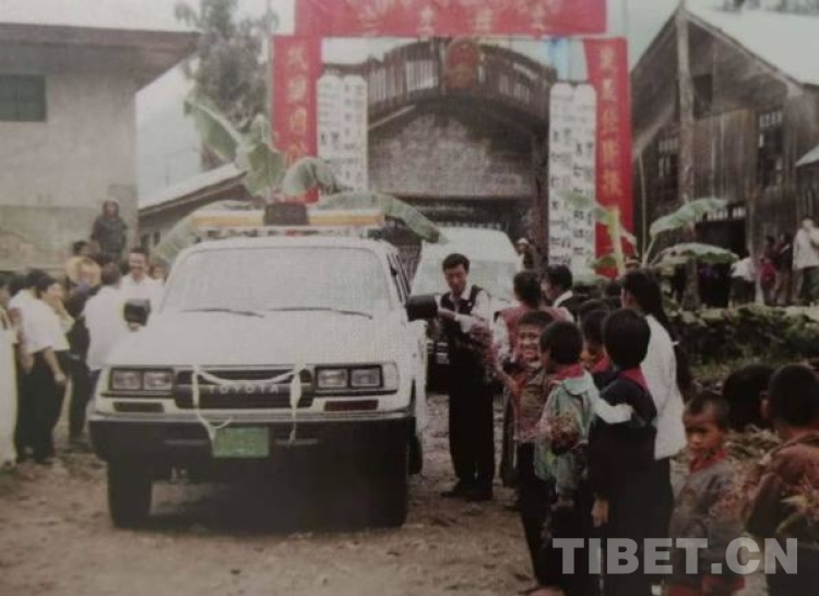1993年9月25日,第一輛汽車駛達(dá)墨脫縣城內(nèi)的情景。