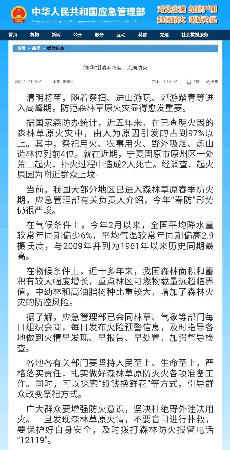 圖片來源于應(yīng)急管理部官網(wǎng)截圖