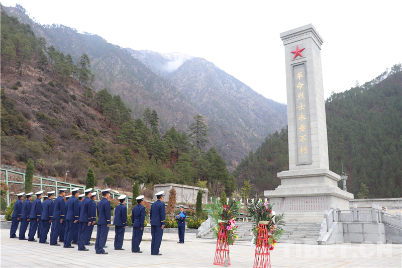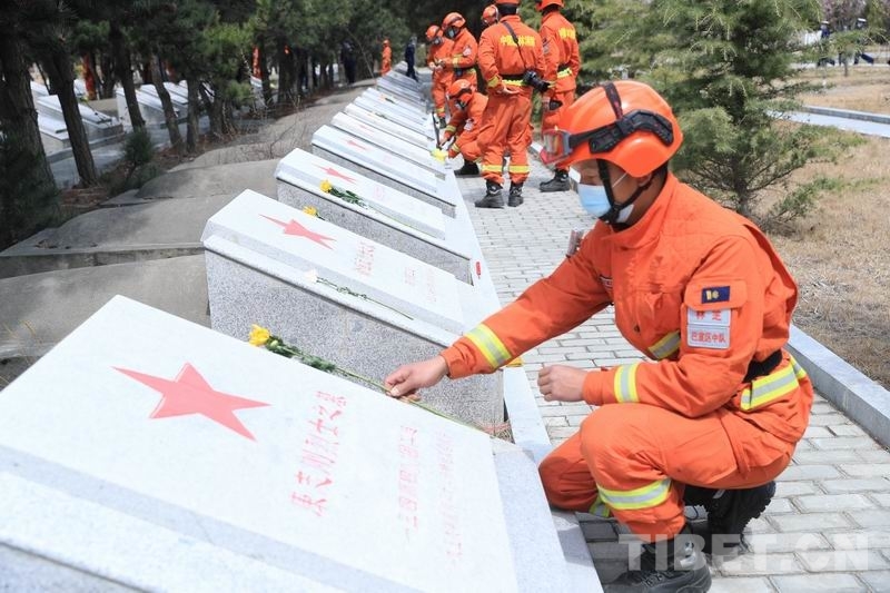 圖為林芝市森林消防支隊指戰(zhàn)員向烈士敬獻鮮花