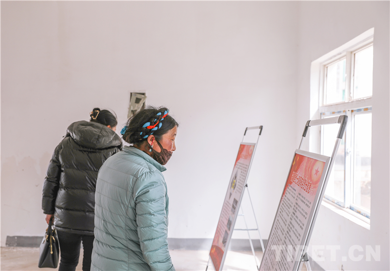圖為祭掃群眾觀看西藏昌都市芒康縣烈士陵園內(nèi)設置的展板 攝影:蔡生萬