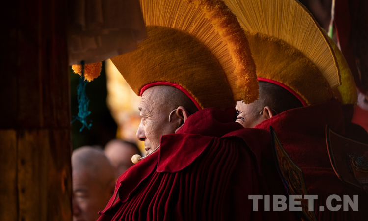 圖為西藏自治區(qū)2021年度藏傳佛教學(xué)經(jīng)僧人考核晉升格西拉讓巴學(xué)位立宗答辯暨頒證儀式現(xiàn)場 攝影:趙耀