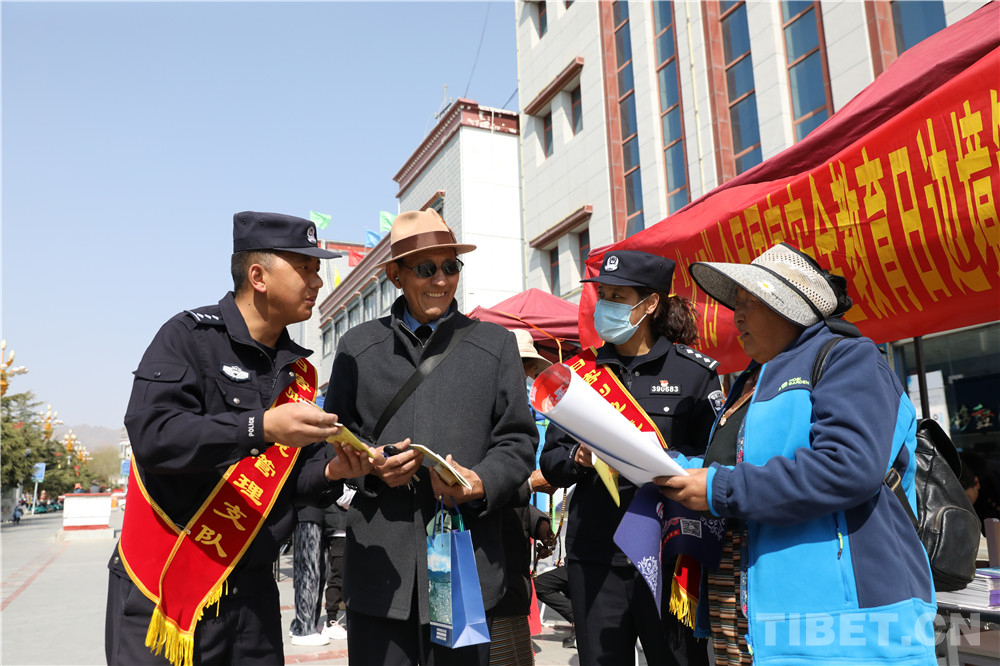 “12339,是國家安全機關受理公民和組織舉報電話。這條熱線是由國家安全部設立的,為了方便公民組織向國家安全機關舉報行為或線索。”在西藏日喀則市的街頭,日喀則邊境管理支隊民警達娃卓嘎為過往群眾講解“全民國家安全日”的相關知識。