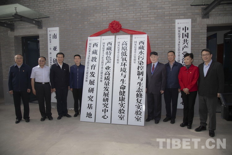 研討會開幕式之前,與會領(lǐng)導(dǎo)為西藏教育發(fā)展研究基地、西藏特色產(chǎn)業(yè)高質(zhì)量發(fā)展研究中心、高原低氧環(huán)境與生命健康實驗室、西藏水污染控制與生態(tài)修復(fù)實驗室同時掛牌揭幕。大會主旨發(fā)言之后,西藏民族大學(xué)黨委常委、副校長史本林、西藏駐格爾木辦事處(藏青工業(yè)園區(qū))黨委書記邱川共同簽訂雙方合作框架協(xié)議,旨在加強科研交流合作,共同為西藏社會高質(zhì)量發(fā)展做出貢獻(xiàn)。