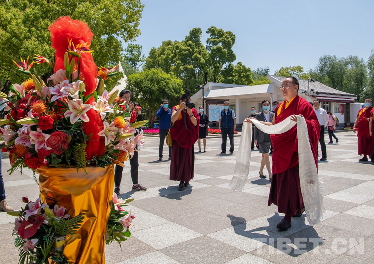 10日上午,班禪專程來到位于上海市青浦區(qū)練塘鎮(zhèn)的陳云紀念館,認真聽取了陳云同志有關(guān)事跡,并向陳云銅像敬獻哈達,追思陳云同志愛國憂民、為共產(chǎn)主義事業(yè)鞠躬盡瘁的偉大一生……