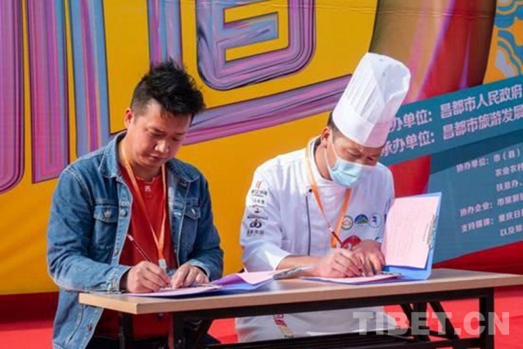 此外,活動(dòng)現(xiàn)場還進(jìn)行了非物質(zhì)文化遺產(chǎn)體驗(yàn)活動(dòng)和產(chǎn)品展銷活動(dòng),共有32個(gè)企業(yè)參加。據(jù)悉,截止活動(dòng)結(jié)束,現(xiàn)場累計(jì)交易額5萬余元。重慶文旅館同參賽人員進(jìn)行現(xiàn)場簽約,這對昌都餐飲業(yè)的推廣和發(fā)展具有重要的意義。(中國西藏網(wǎng) 記者/次旦拉姆 圖片由卓卓康巴美食大賽組委會(huì)提供)