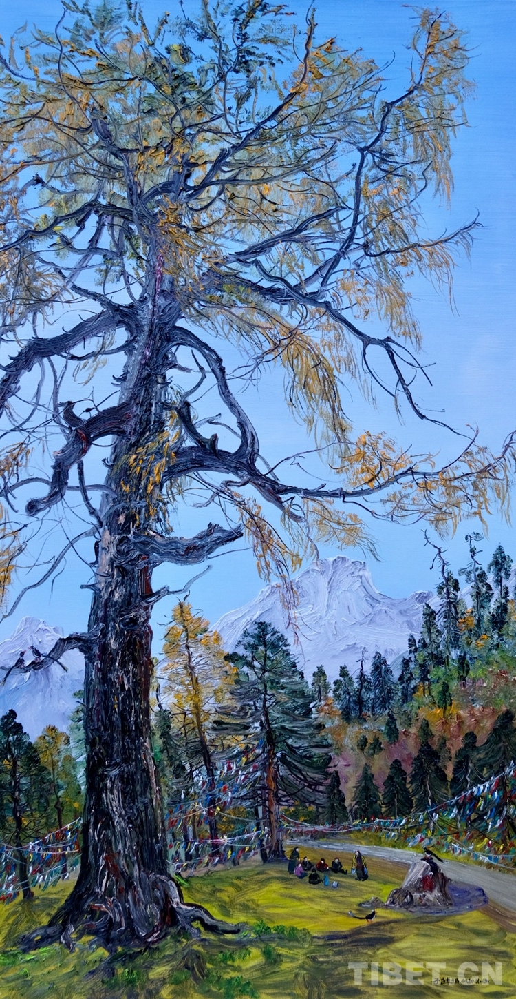 “展覽的油畫創(chuàng)作大多是在寫生現(xiàn)場完成的,她的藝術(shù)風(fēng)格也清新生動(dòng)。她以自己的寫生作品,令觀眾共享融入自然的至純大美,這是一種平易近人的審美方式?!眹乙患壝佬g(shù)師余有心評價(jià)說,子白特別善于畫樹,她的一幅幅佳作就是這些千年古樹的肖像,借審美而參悟自然生態(tài)的奧妙,帶觀眾領(lǐng)會(huì)高原生態(tài)文明之真諦。