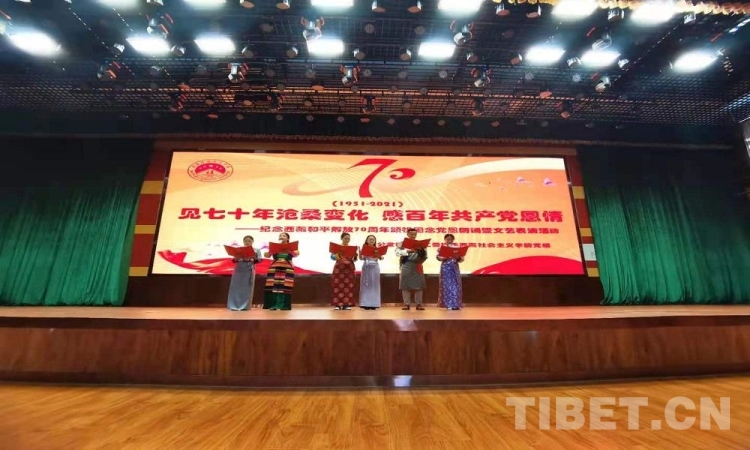 5月23日是西藏和平解放70 周年紀念日。23日上午,由西藏自治區(qū)拉薩市蔡公堂街道和西藏社會主義學(xué)院共同舉辦的紀念西藏和平解放70周年頌祖國、念黨恩朗誦暨文藝表演活動舉行?,F(xiàn)場鮮花嬌艷,燈光炫目,旋律悠揚,歌聲嘹亮。