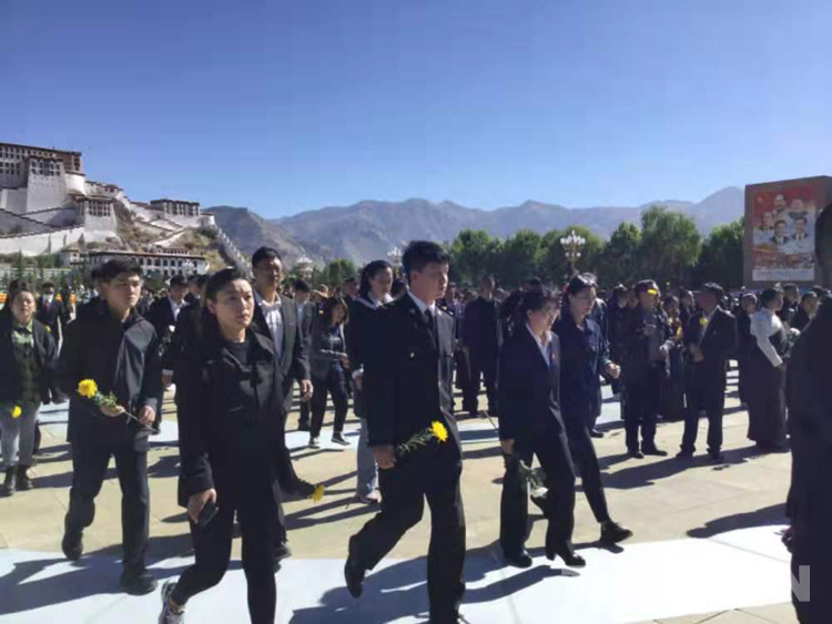 出席當(dāng)天儀式的干部職工代表,解放軍和武警部隊(duì)官兵代表,學(xué)校師生、離退休干部職工、僧尼和群眾代表1000余人。10時整,在軍樂隊(duì)伴奏下,西藏黨政軍負(fù)責(zé)人同西藏各界代表一起高唱中華人民共和國國歌,國歌聲在布達(dá)拉宮廣場回蕩。