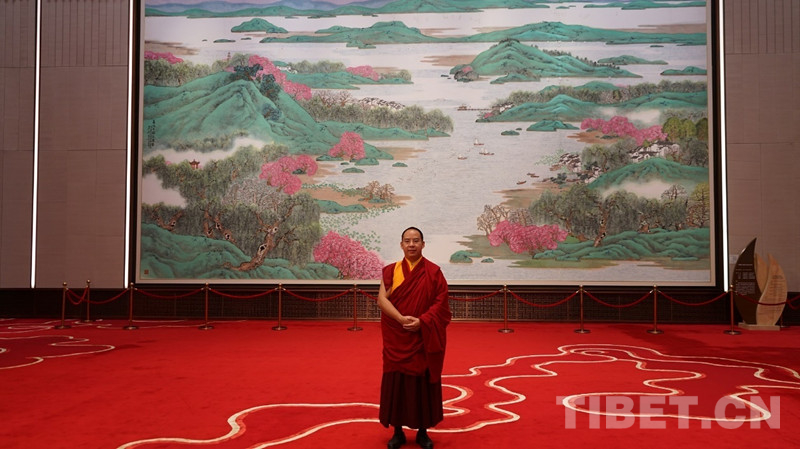 圖為班禪在國(guó)家會(huì)展中心(上海)留念