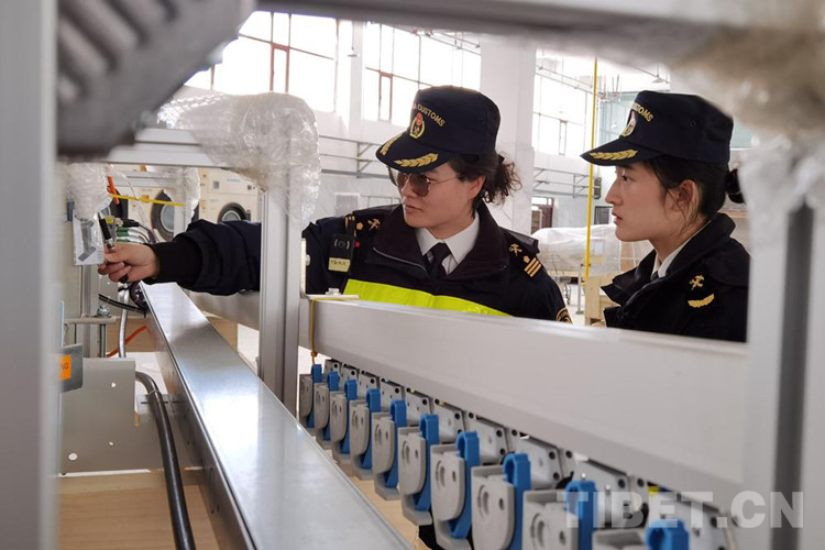 圖為拉薩海關(guān)派員對一批德國進口洗滌設備開展目的地查驗