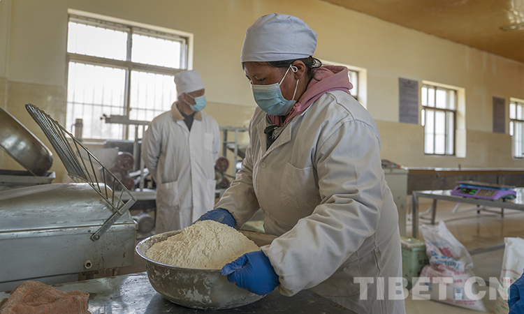 圖為阿里地區(qū)普蘭縣西德糌粑加工廠機(jī)械化生產(chǎn)車間 攝影:趙耀