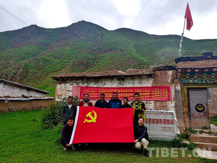 我們在布德故居接受了一堂生動的黨史教育。當結(jié)束參觀,走出故居門時,我們一下子更加領(lǐng)悟到眼前的村莊、山川、河谷為什么如此寧靜、美好而又詳和的真正原因了。在大家提議下,便展開黨旗,在“草原英雄布德故居”前合影,這是一次最難忘的黨日活動。當上車離開時,我們與頓珠扎西同志和其家人依依不舍。英雄布德是我們?nèi)松飞系囊蛔S碑和榜樣,將照耀我們的行程,增強我們的斗志,不忘初心,牢記使命,繼續(xù)前行。(中國西藏網(wǎng) 文/馮智 本文系中國藏學研究中心“那曲市民族交往交流交融史實調(diào)研組”供稿)
