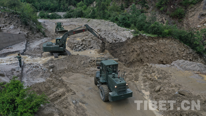 圖為該支隊(duì)救援官兵正在對(duì)川藏線怒江溝泥石流災(zāi)害進(jìn)行搶通
