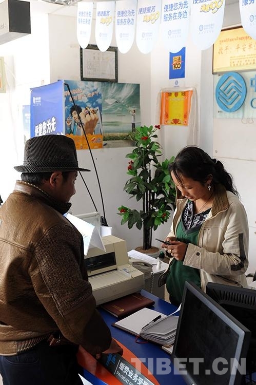 這是雙湖特別區(qū)(現(xiàn)雙湖縣)電信所業(yè)務(wù)人員在辦理手機業(yè)務(wù)(唐召明2009年8月3日攝)