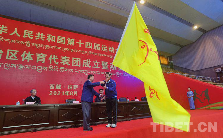 圖為第十四屆全運(yùn)會(huì)西藏自治區(qū)體育代表團(tuán)成立授旗儀式 攝影:賈華加