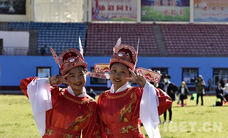 圖為2021雅礱文化旅游節(jié)開(kāi)幕式文藝演出中,山南市第二高級(jí)中學(xué)生們?cè)诤驁?chǎng) 攝影:王媛媛