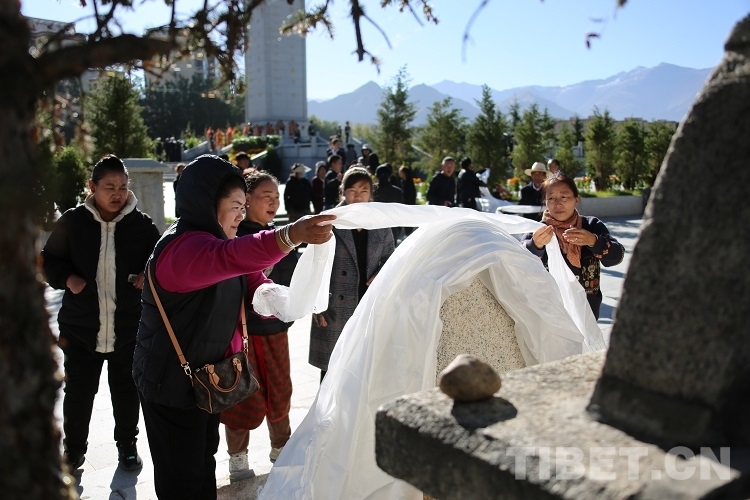 圖為群眾向烈士墓敬獻哈達 攝影:王佳豪