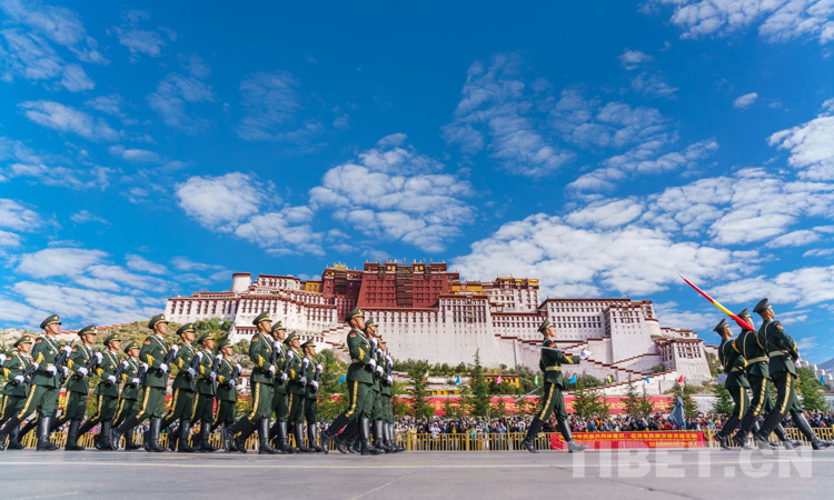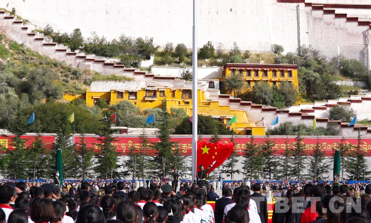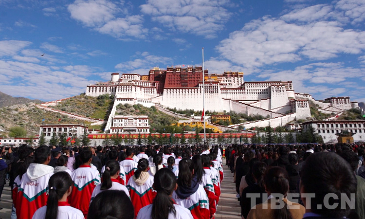 當(dāng)日,布達(dá)拉宮廣場上,漢、藏文“熱烈慶祝中華人民共和國成立72周年”的標(biāo)語格外醒目,西藏自治區(qū)以及拉薩市各族各界代表共1000余人參加了儀式。(中國西藏網(wǎng) 記者/趙耀)